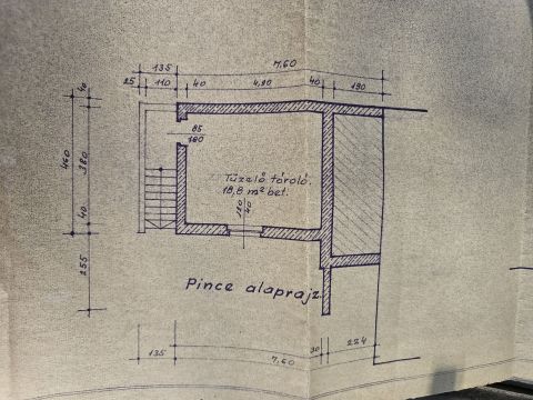 A főépület 100 % osan felújítandó állapotú és fafödémes, a ház alatt 18,8 nm- es pince húzódik.