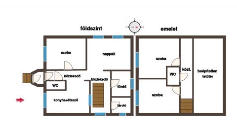 Falazat: Tégla + tömés + könnyűszerkezet.