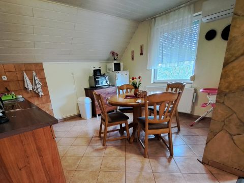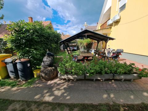 A ház emellett számos egyedi jellemzővel bír, többek között egy vendégszálláshely külön épületben, amely tökéletes választás lehet nagyobb családok vagy a vendéglátást kedvelő tulajdonosok számára. A rendezett udvarban megtalálható egy hintaágy, egy pagoda, valamint egy pizzasütő kemence, amelyek garantálják a kikapcsolódást és a szabadtéri programok sikerét. A komfortérzetet növeli a házhoz tartozó garázs és pince is.