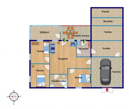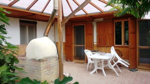 Az ingatlan a maga nemében páratlan. 2017-ben kapta meg jelenlegi tulajdonosa a használatba vételi engedélyt. Rendkívüli technológiával épült, melytől az egész ház él és lélegzik. Egyedileg gyártott fa nyílászárói mellett a kuriózumnak számító fagerendás mennyezet varázsolja el az oda érkezőt. Az érzékszerveinkre hat még a gyönyörű, épített, fatüzeléses kályhák, melyek a nappali és a konyha főszereplői. Ezenkívül az ingatlanban 3 hálószoba és fürdőszoba kapott még helyet. Fedett terasza mellé komfortos télikert került, mely nemcsak a virágok hanem az ott élők kedvelt helye. Az épülethez továbbá tartozik egy vegyes falazatú 70 nm-es lakrész, mely statikailag megerősített, 2 szobával, konyhával, fürdőszobával, komfortos garázzsal. A házban ülepítéssel és tisztítással kerül be az összegyűjtött esővíz, mely bevizsgált ivóvíz minőségű. Az ingatlanra 14 db 5.2 kW-os napelemek kerültek, ezzel csökkentve a ház rezsiköltségét. A kertben elektromos autó töltésére alkalmas 3 fázisú töltő is rendelkezésre áll. Gondozott kertjében kültéri kemence, gazdagon termő gyümölcsfák, melléképületek találhatóak. Terebélyes kertjében akár gazdálkodhat, állatokat tarthat.
