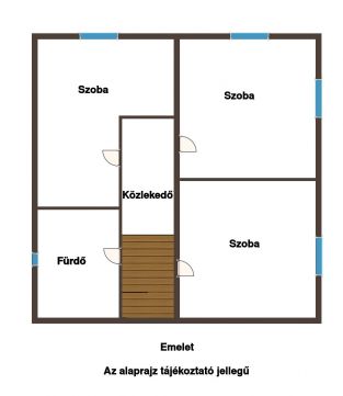 Az emeleten három háló és egy nagy fürdőszoba található.
