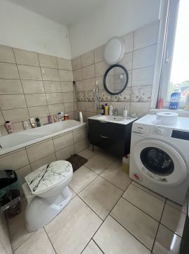 Kiváló elosztású ingatlan, alsó szinten konyha-étkező, és egy fürdő található, illetve egy tágas nappali, mely nagy ablakfelületeinek és kedvező tájolásának köszönhetően szép világos. Az előtérből jutunk le a pincébe, itt van a gázkazán, illetve méretéből adódóan remek tárolási lehetőség.