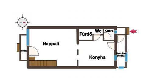 A terasz beépítésével kialakított praktikus előszobán keresztül lépünk be a lakásba.