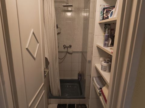 Fürdőszoba zuhanyzóval, WC-vel és mosdóval