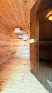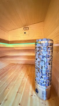 - Szaunaház öltözővel, SAWO kőtorony kályhával+ Finnrelax infraszauna