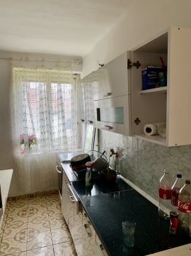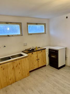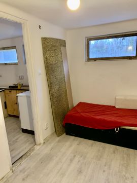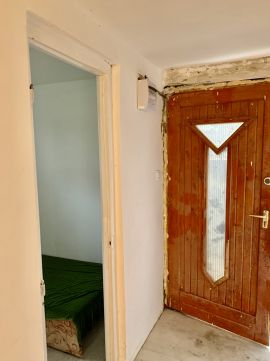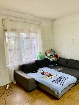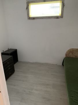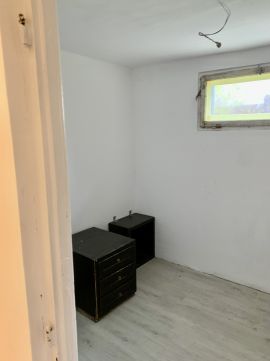 A harmadik, 50 m2-es lakás, mely a szuterén felett helyezkedik el, jelenleg is lakott, de felújítandó állapotú. Nappali/konyha/étkező, egy tágas szoba, kamra, fürdőszoba és WC található benne.
