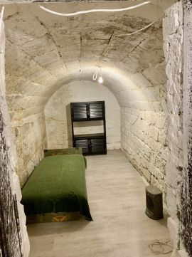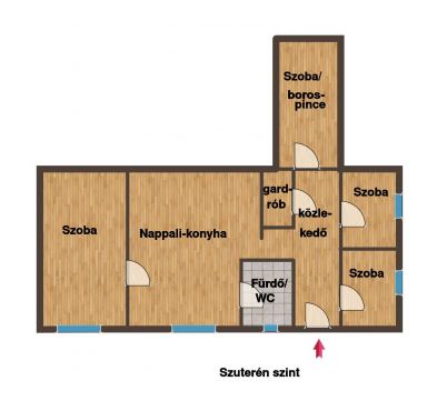A szuterén szinten egy nappali plusz 3 hálószoba-konyha/étkező-fürdő/WC-közlekedő-borospince/szoba beosztású lakrész került kialakításra, mely felújított, de még nincs teljesen készen.