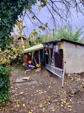 Az ingatlan hatalmas, 1202 m2-es, ketté bontható telken, nagyon jó környéken, sok új ház szomszédságában helyezkedik el.