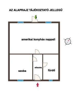 1 SZOBA + AMERIKAI KONYHÁS NAPPALI