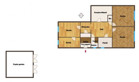 A ház részben alápincézett, az udvaron dupla garázs is található.