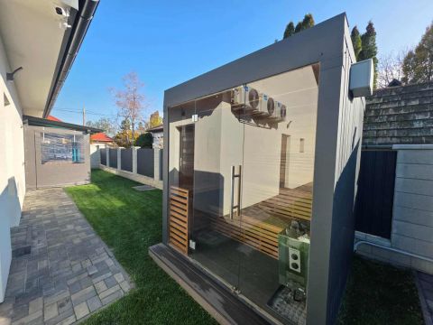 A gondozott udvarban medence, szauna, fedett grillező, automata öntözőrendszer és fúrt kút található, melyek a pihenést és kényelmet szolgálják.
