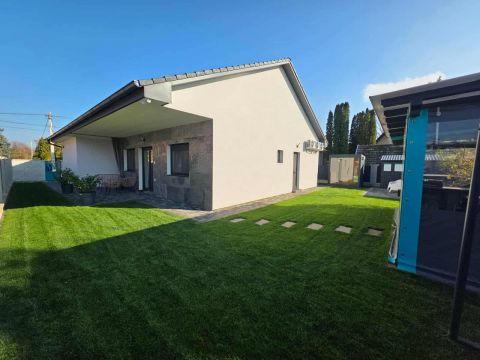 A ház napelemmel, elektromos padlófűtéssel és klímával felszerelt, így energiatakarékos és komfortos. A fedett terasz, minőségi burkolatok, redőnyök és szúnyoghálók tovább növelik az értékét.