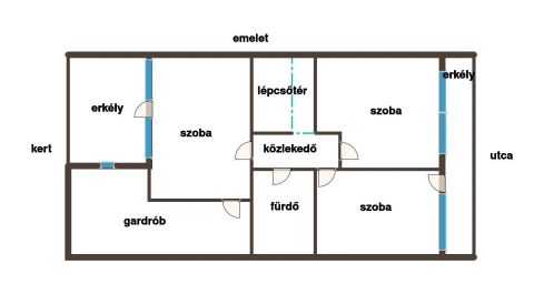 A ház kialakítása praktikus, 160 nm lakóterülete, terei tágasak és világosak, hatalmas nappalija + 3 külön bejáratú szoba, gardrób, 2 db fürdőszoba, nappaliból nyíló terasz és kertkapcsolat, emeleti 2 erkéy, melyek minden családtagnak külön kis világot ad.