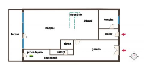 Az épület alápincézett, előkertje lekerített, födszintjén kényelmes garázs, tároló kialakítással.