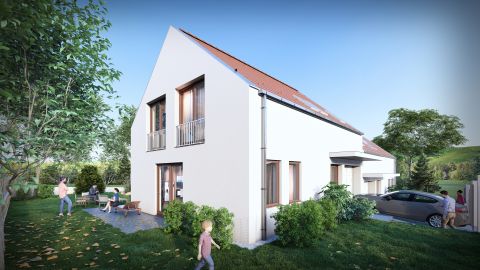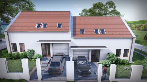 Nemesvámoson eladó egy új építésű, 157 m2-es, nappali + 5 szobás, tégla ikerház rész, a hozzá tartozó, kb. 400 m2-es telekkel.
