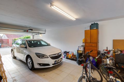 A garázsban két autó kényelmesen elfér, mellette rengeteg tárolási lehetőséggel.