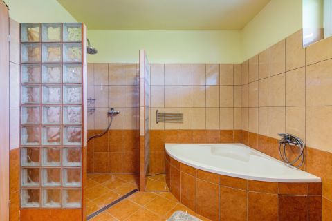 Ha igény van rá, szauna is kialakítható lenne a garázs szintjén lévő tágas fürdőhelyiségben.