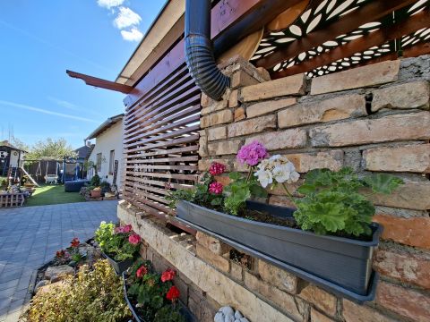 82 m²-es, felújított családi ház eladó 530 m²-es telken. Az ingatlanhoz tartozik egy 29 m²-es fedett terasz szaunával, valamint egy 80,5 m²-es melléképület, amely akár külön lakrésszé vagy vállalkozás céljára is kialakítható.