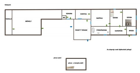 Elrendezés: 2 szoba + nappali, konyha, fürdő, gardrób, iroda (külön bejárattal), pince.