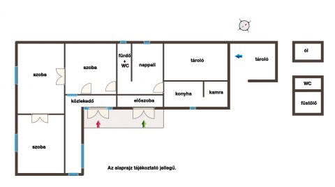 Az épület mellett található tárolóból akár egy harmadik szoba is kialakítható, ezen kívül plusz tároló és egy füstölő is található