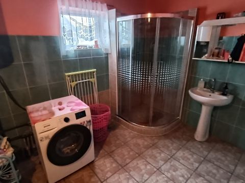 A házhoz tartozik egy fürdőszoba és egy különálló WC is, amelyek praktikus elrendezésűek, így megkönnyítve a mindennapi életvitelt.
