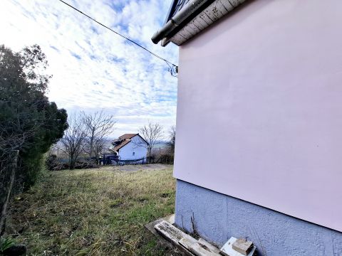 A 820 m²-es telek gondosan karbantartott: néhány gyümölcsfa, tágas, könnyen művelhető kert, napos, kellemes domboldali fekvés, a hegy felől érkező friss levegő és nyugalom jellemzi.