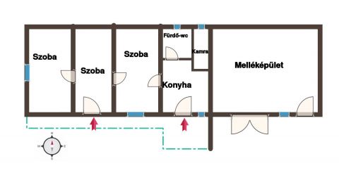 A ház 3 szobából áll, amelyek egymásból nyílnak, megőrizve a klasszikus parasztház elrendezését. A szobák parkettásak, a többi helyiség járólappal burkolt. Az ingatlanban található konyha, étkező, kamra, valamint fürdőszoba WC-vel. A fűtés gázkonvektoros.