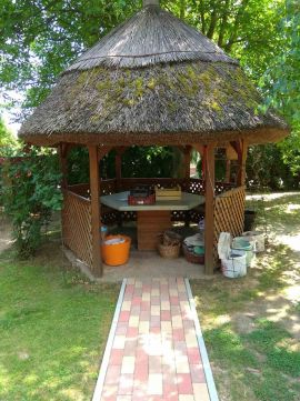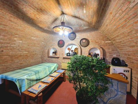 Az akár külön lakótérként is használható 100 nm pinceszinten van egy hangulatos, családi, baráti összejövetelekhez, kerti partykhoz kiválóan hasznosítható étkező rész konyhával, és egy külön vizesblokk.