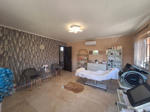 Az udvarban külön épület található, fagyálló burkolattal: tágas 37 m²-es garázzsal és jelenleg szépségszalonként működő, külön bejáratú helyiséggel.