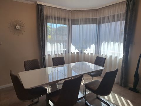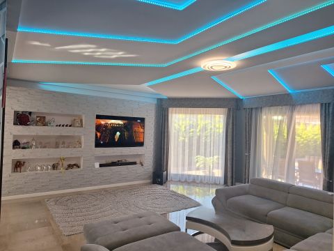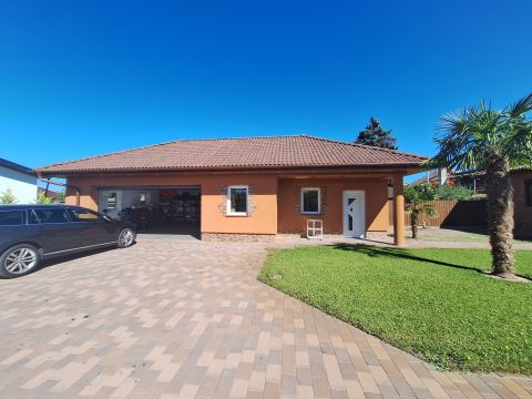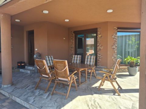 2 fedett terasz, pálmafás, térkövezett udvar, automata öntözőrendszer teszi teljessé az élményt.