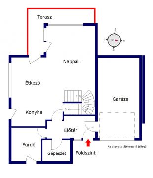 A földszinten az amerikai konyhás nappalin (43 nm) és a kiszolgálóhelyiségeken kívül egy kényelmes, nagy mértű (22 nm) garázst és fürdőszobát is találunk. ( Igény esetén a garázs helyén egy földszinti, 4. hálószobát is kialakíthatunk, így akár kétgenerációssá is tehetjük otthonunkat.)
