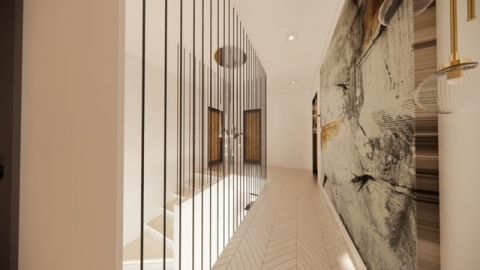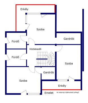Az emeleten egy kényelmes(16,6 nm) szülői háló (saját fürdővel és gradróbbal), egy másik kényelmes hálószoba (16,83 nm) szintén gardróbbal, illetve egy harmadik háló (17,39 nm) és a hozzájuk tartozó fürdőszoba kapott helyet.