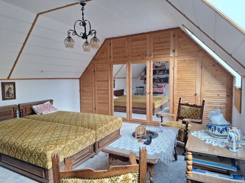 Az ingatlanban mindkét szinten padlófűtés biztosítja az egyenletes hőmérsékletet, míg a nyári melegben az emeleten klíma
