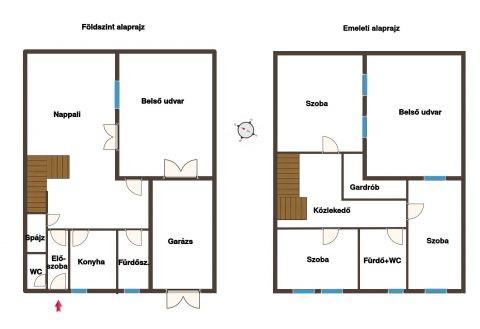 Eladó Kecskeméten a Hunyadivárosban egy 2 szintes, nappali + 3 szobás, 2 fürdőszobás, sorházi lakás, garázzsal, kis előkerttel, átrium udvarral.