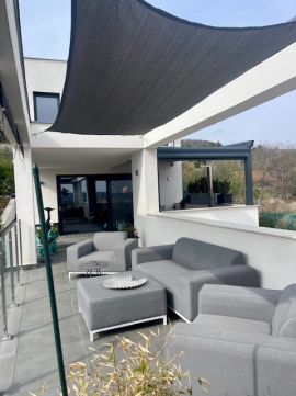 * kényelmi extrák: elektromos redőnyök, szúnyoghálók minden ablakon, elektromos pergola a teraszon