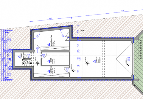 * alsó szint: duplagarázs, fedett autóbeálló, tároló helyiségek, gardróbszoba, gépészet