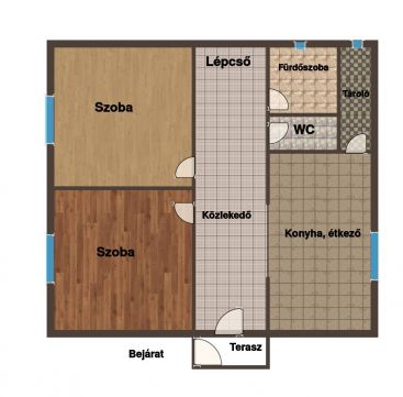 A helyiségek kialakítása, elhelyezkedése nagyon jó!