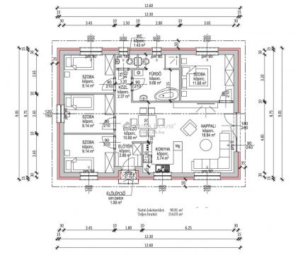 Eladó egy 90m2-es családi ház, nappali + 4 szoba, nagy méretű, 1122 m²-es telken - az ár a telekkel együtt értendő!