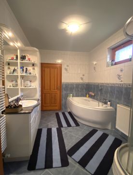 modern fürdőszoba és külön háztartási helyiség
