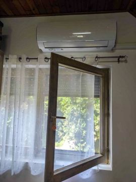A földszinten a nyílászárók cseréje megtörtént, míg az emeleten a jól záródó, megkímélt fa ablakok maradtak. A felső szinten egy 3 éves Gree klíma gondoskodik a megfelelő hőmérsékletről a nyári hónapokban.