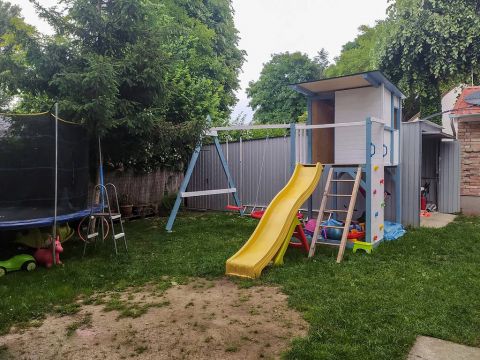A házhoz tartozik egy 12 m²-es garázs és egy 4 m²-es tároló is, így a parkolás és a tárolás is kényelmesen megoldott.