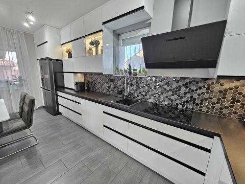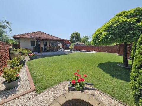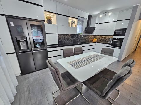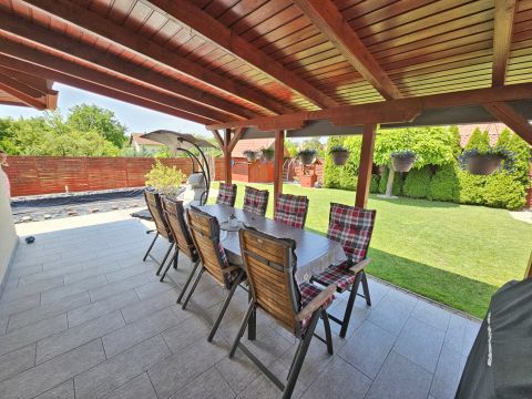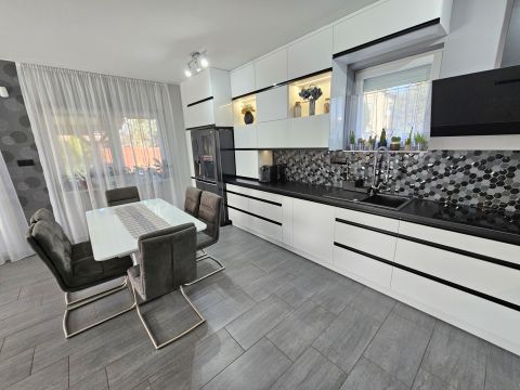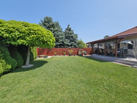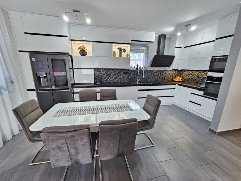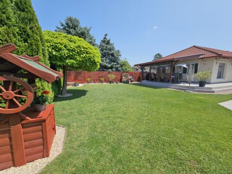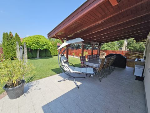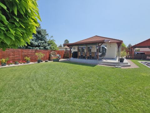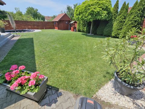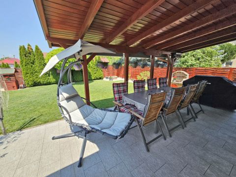 A beépített bútorok az ár részét képezik, de akár teljes bútorzattal megvásárolható. A magas minőségben, minden apró részletére kiterjedt figyelemmel megépített, újszerű állapotú családi otthonába, igény szerint tényleg csak a bőröndjeit kell hoznia! Nem kell kompromisszumot kötnie, hiszen az utca és elhelyezkedése is kivételesen intim és csendes: a légifolyosók megfelelő távolságra, az M4-es elkerülő és a vasútállomás is egyaránt könnyedén elérhető, de kellően távol vannak a csend és nyugalom érdekében. A ház elhelyezése és intim hátsókertje, valamint a szomszédok felől zárt kialakítás biztosítja a medencés, sütögetős, fedett teraszos pihentető napokat.