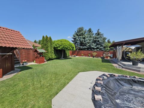 Itt a kivételes lehetőség: minden igényt kielégítő, kivételes, tégla építésű, br. 132m2-es, 4 szobás, klímás, cirkós és vegyes tüzeléses (padló+radiátorfűtés), szigetelt, thermo ablakos, cseréphéjazású, duplakomfortos, garázzsal és fedett beállóval is rendelkező, nagy teraszos, körbejárható, önálló, családi ház eladó Üllő csendes, nyugodt, Budapest felől könnyebben megközelíthető, kiváló, kertvárosi hangulatú utcájában, 699m2-es telken!