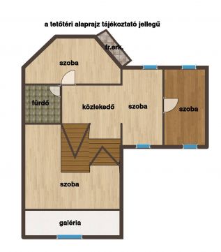 A tetőtérben 36.70 nm -en található 2 szoba, közlekedő, fürdő, galéria.