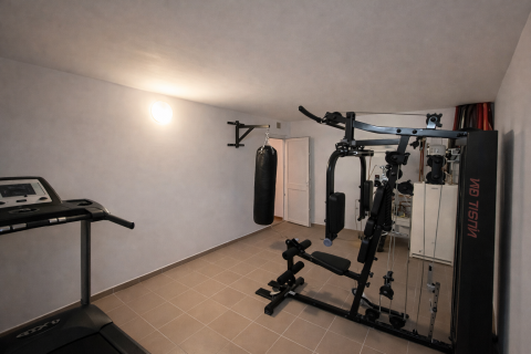 The house also includes a SEMI-BASEMENT CELLAR, which, thanks to its WINDOWED design, is BRIGHT, and currently functions as a fully equipped GYM, but also offers many other possibilities.