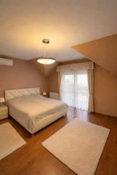 Az emeleten 4 KÜLÖN NYÍLÓ SZOBA, egy GARDRÓBSZOBA, valamint egy FÜRDŐSZOBA és WC került kialakításra, így biztosítva a PRIVÁT SZFÉRÁT és a KÉNYELMES életteret a család minden tagja számára.