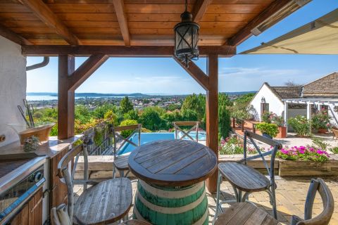 ****Balatonfüred tetején egyedülálló, örök panorámás luxusvilla kültéri medencével****