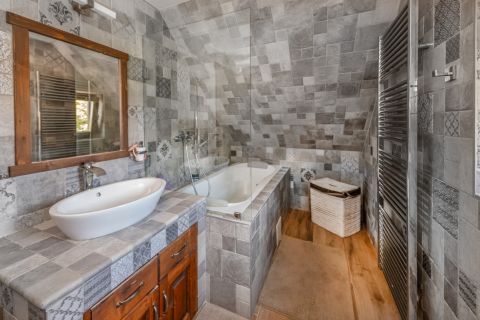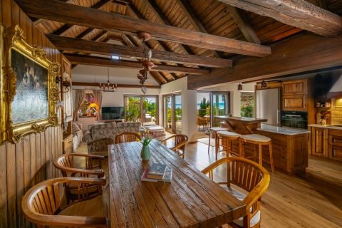 A villa hét szobával rendelkezik: nappali + konyha, 2 hálószoba gardróbbal, további 3 hálószoba, 4 fürdőszoba, iroda és egy borospince. A mindennapokat tágas teraszok, nyári konyha kemencével, valamint egy saját medence és jacuzzi teszik igazán különlegessé. A 3 beállásos parkoló a kényelmes érkezést és biztonságos parkolást biztosítja.