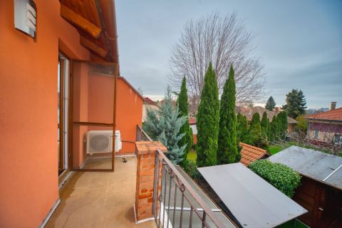 A szülői hálószoba erkély kapcsolatos, a két gyerekszoba a kert felé tekint, az egyik szoba erkélyes.