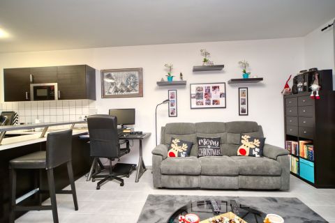 Ezen a szinten a garázsból teljes értékű szoba került kialakításra, egy kisebb tárolóval.